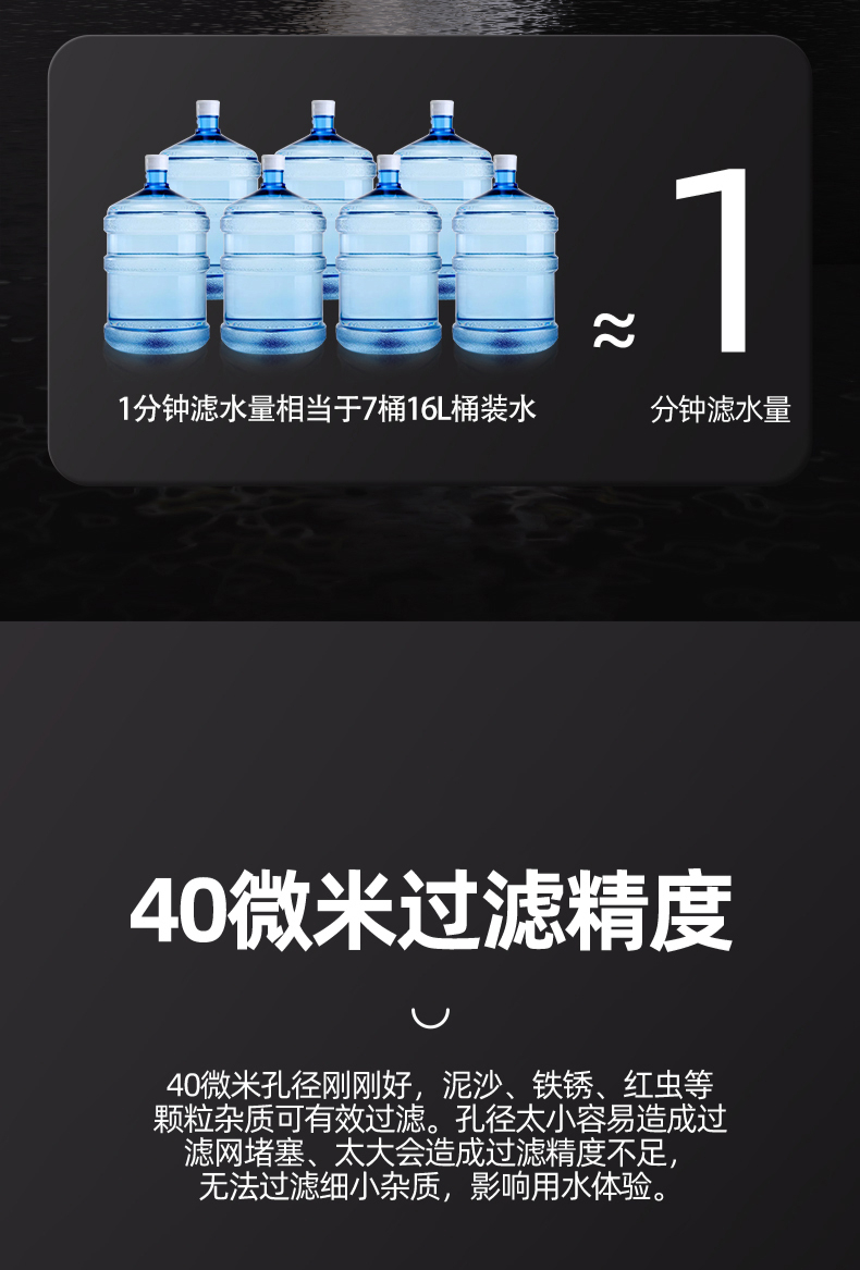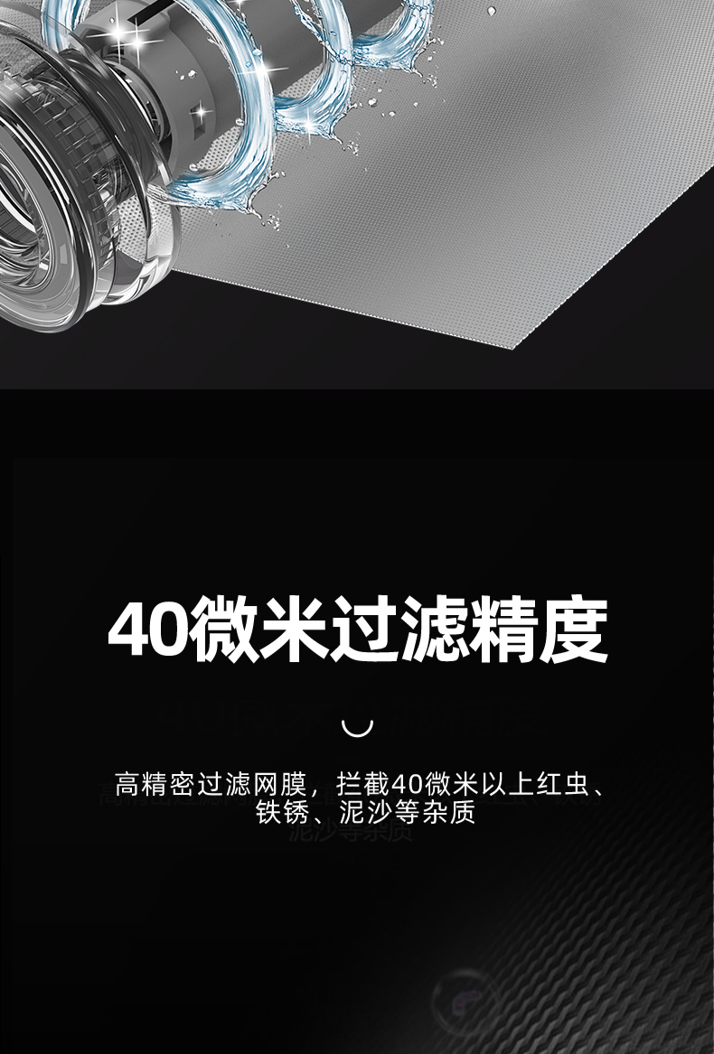40μm精濾密度,316L不銹鋼濾網,雙刷水動力反沖洗,全息流道銅頭,免換濾芯