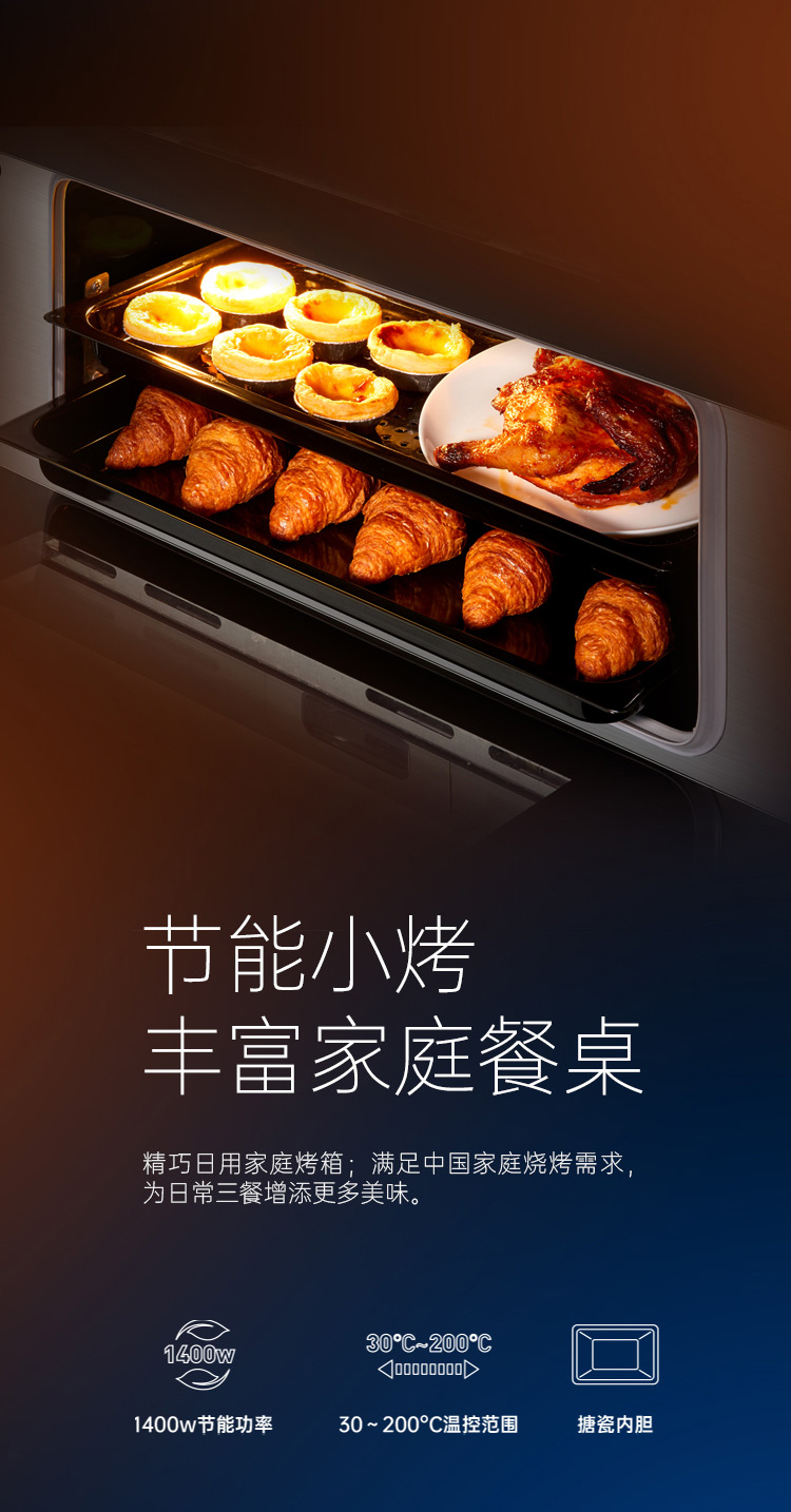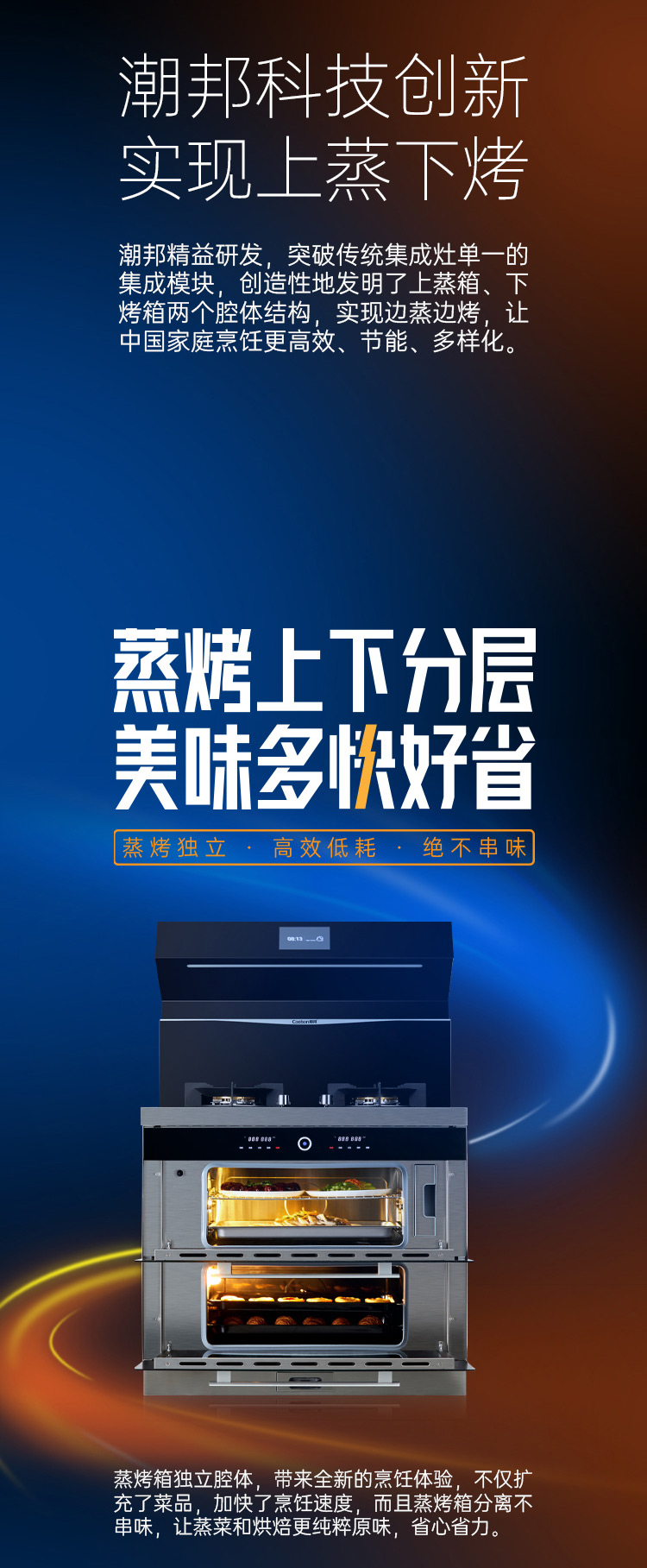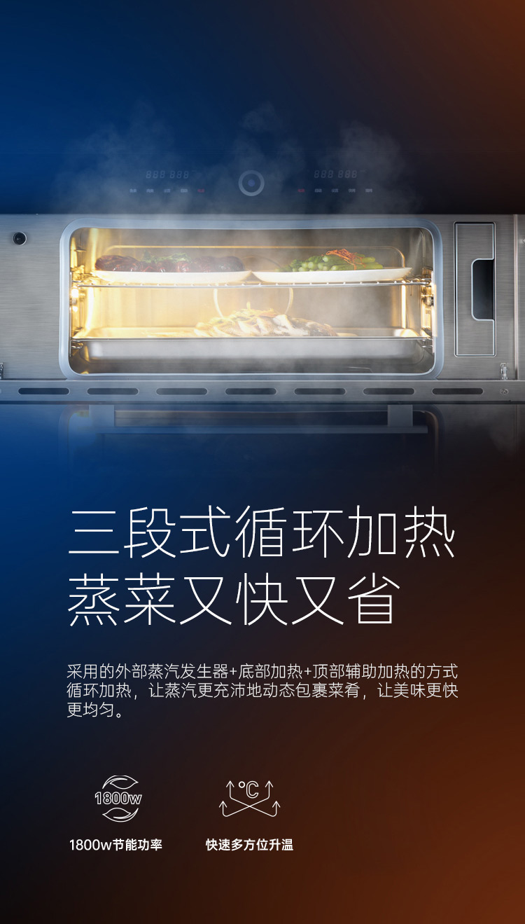 上蒸箱、下烤箱,實現(xiàn)邊蒸邊烤。更高效,更節(jié)能。