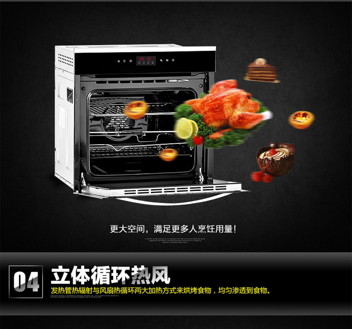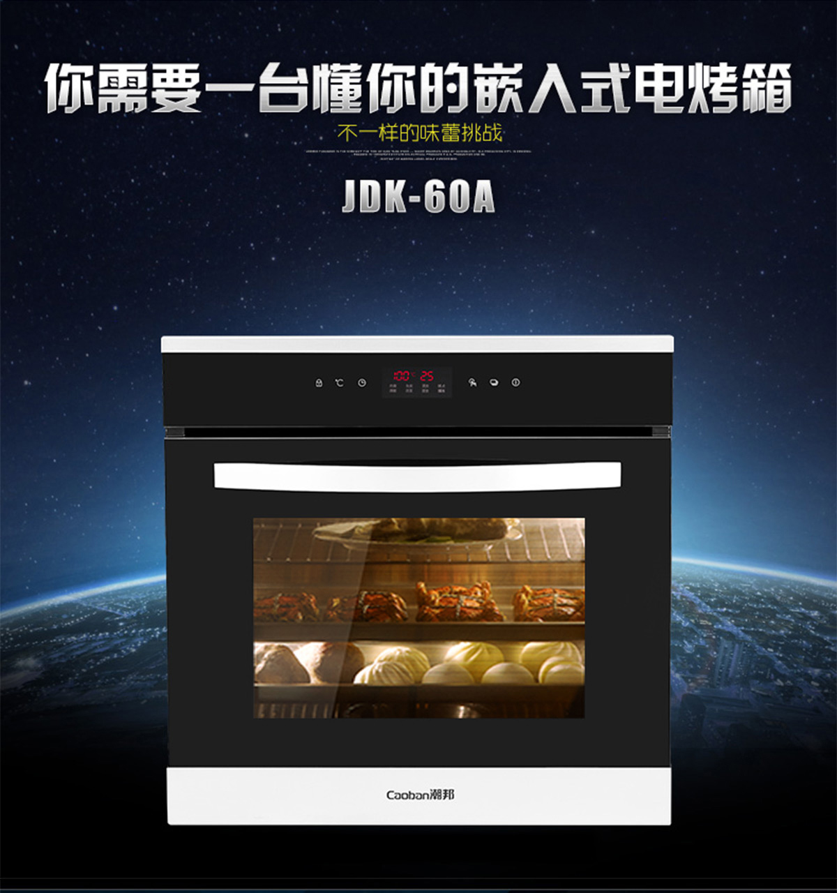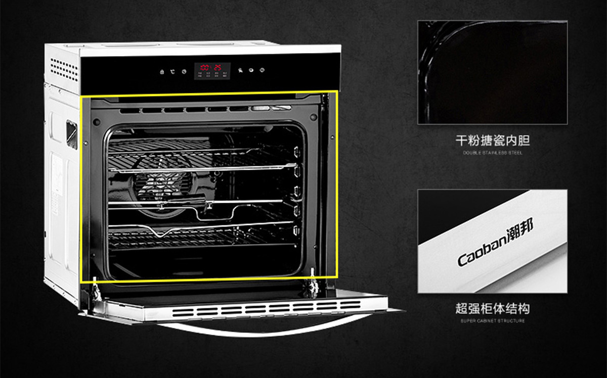 60L大容量;內置全自動精確控溫探頭;立體循環熱風;高溫搪瓷內膽;