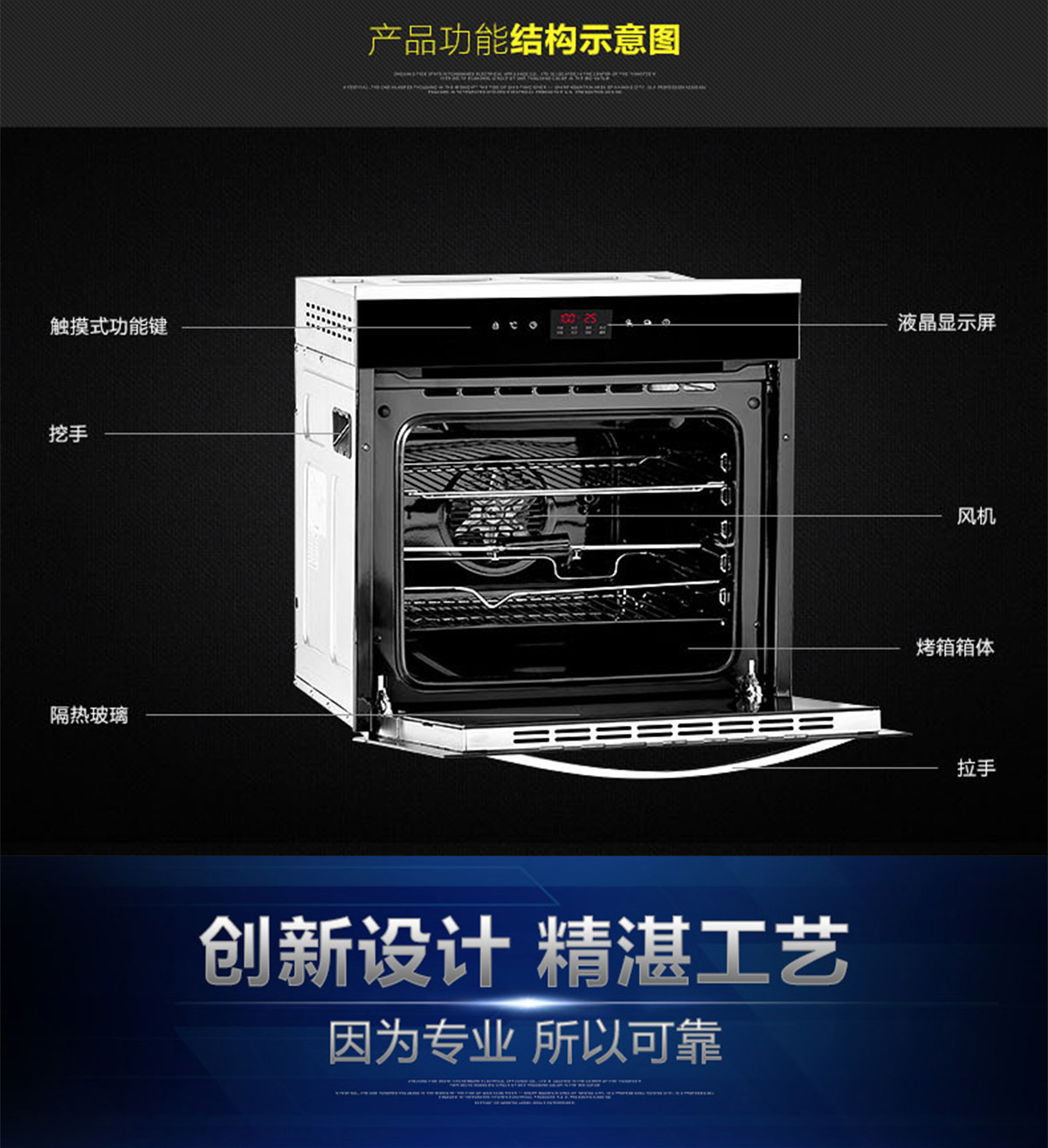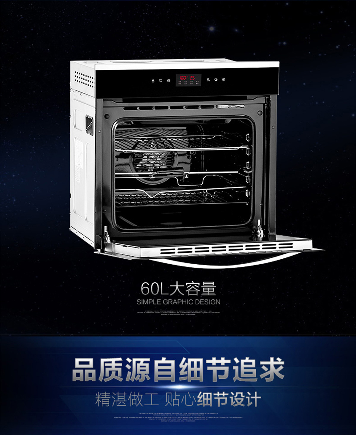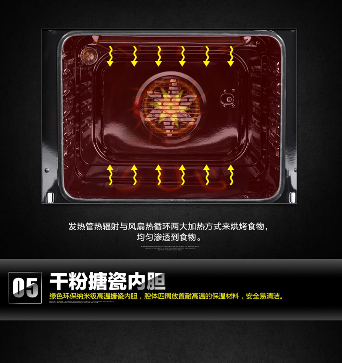 60L大容量;內置全自動精確控溫探頭;立體循環熱風;高溫搪瓷內膽;