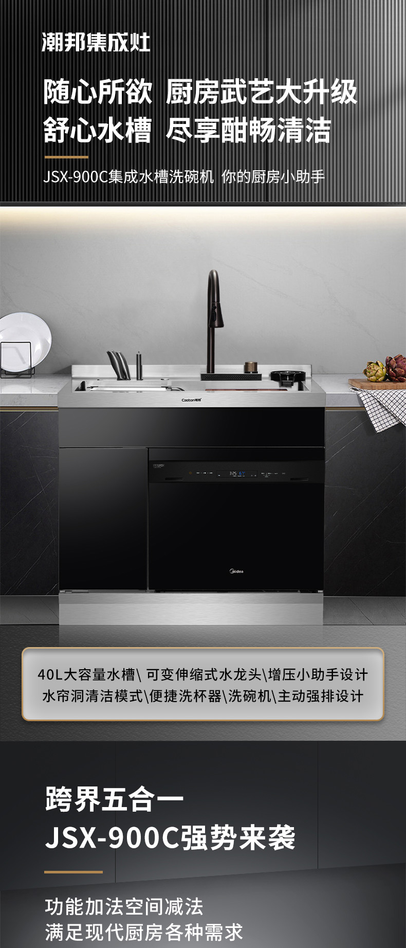 40L大容量水槽,可變伸縮式水龍頭,便捷洗杯器,洗碗機,主動強排設計