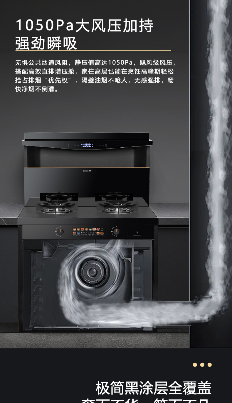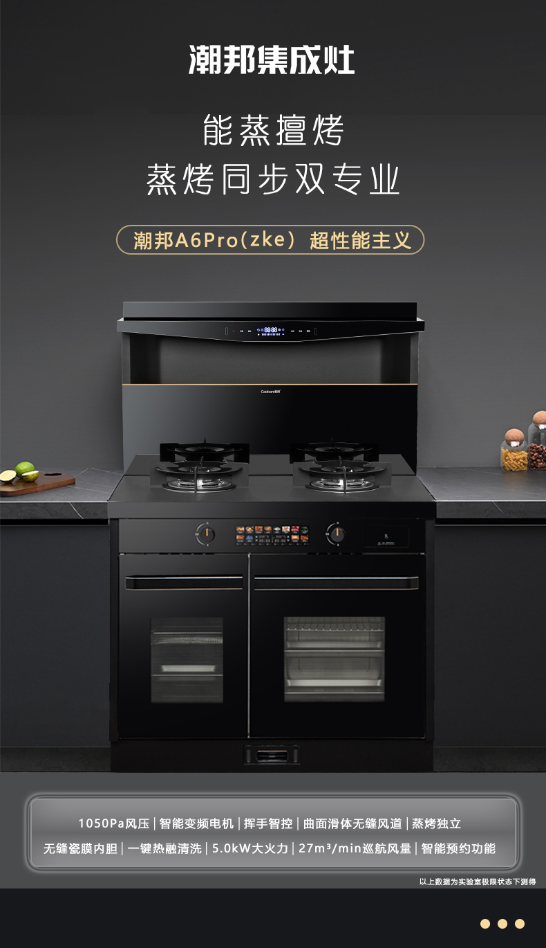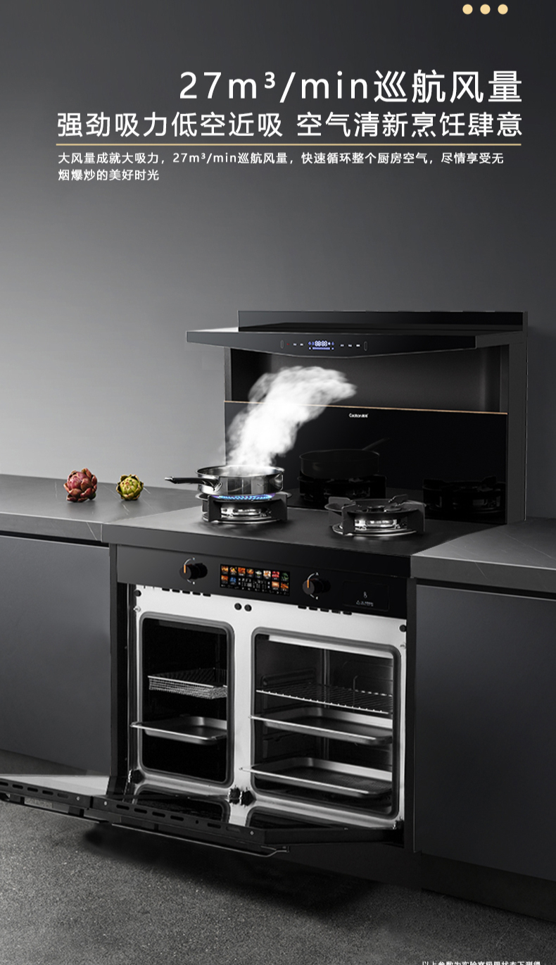 蒸烤同步|1050Pa風(fēng)壓|智能變頻電機(jī)|揮手智控|曲面滑體無縫風(fēng)道|無縫瓷膜內(nèi)膽|一鍵熱融清洗|5 0kW大火力| 27m3 min巡航風(fēng)量| 智能預(yù)約功能