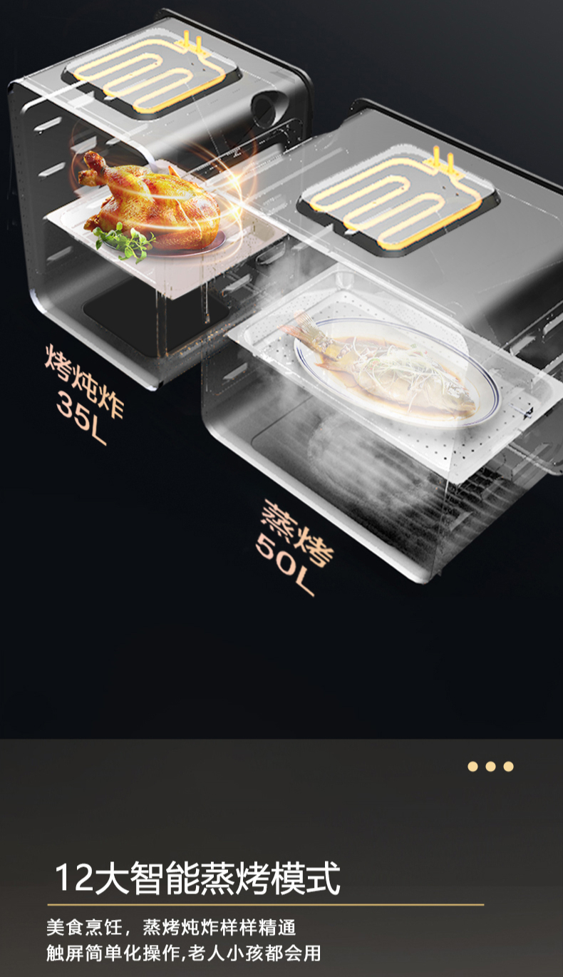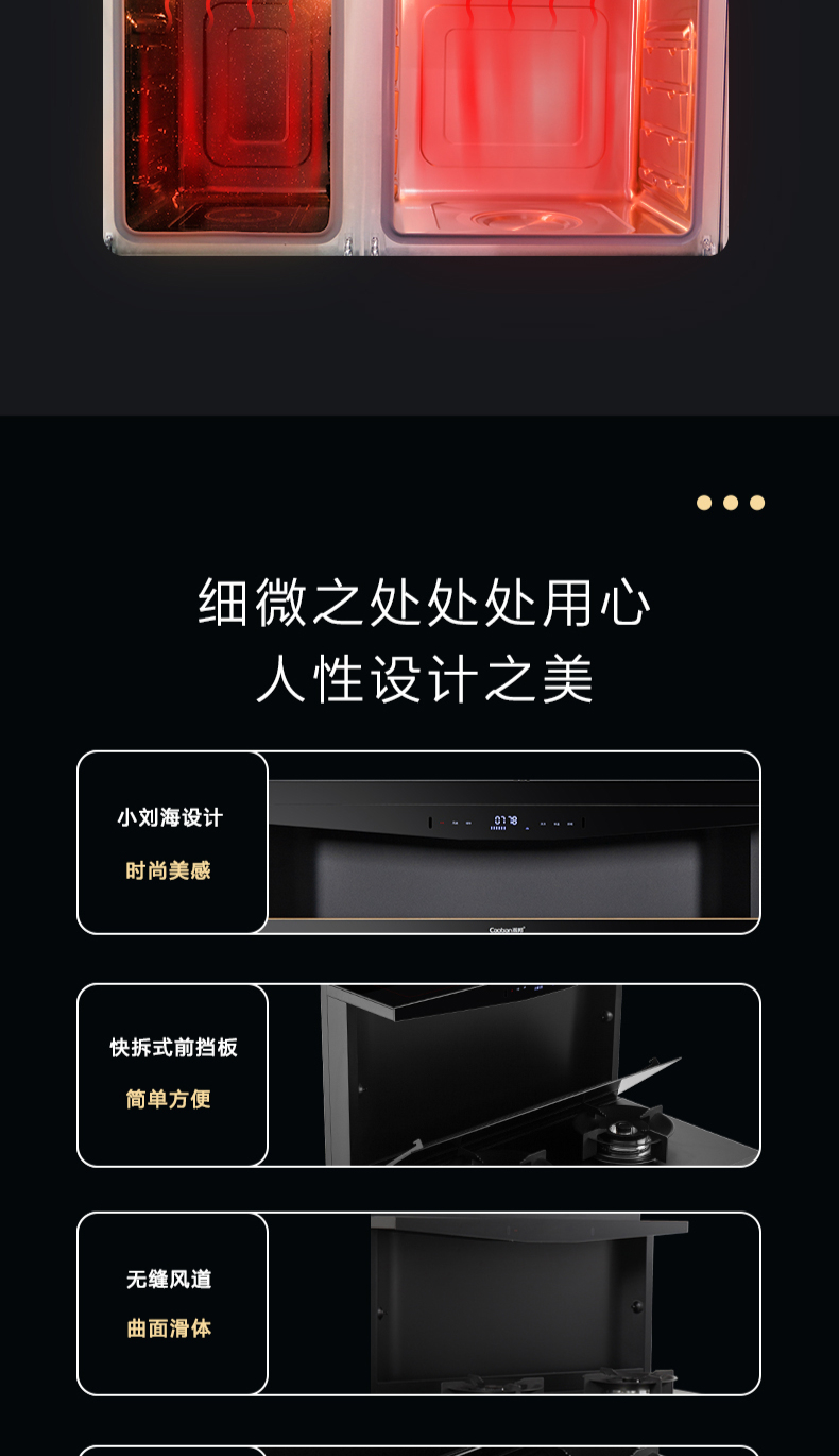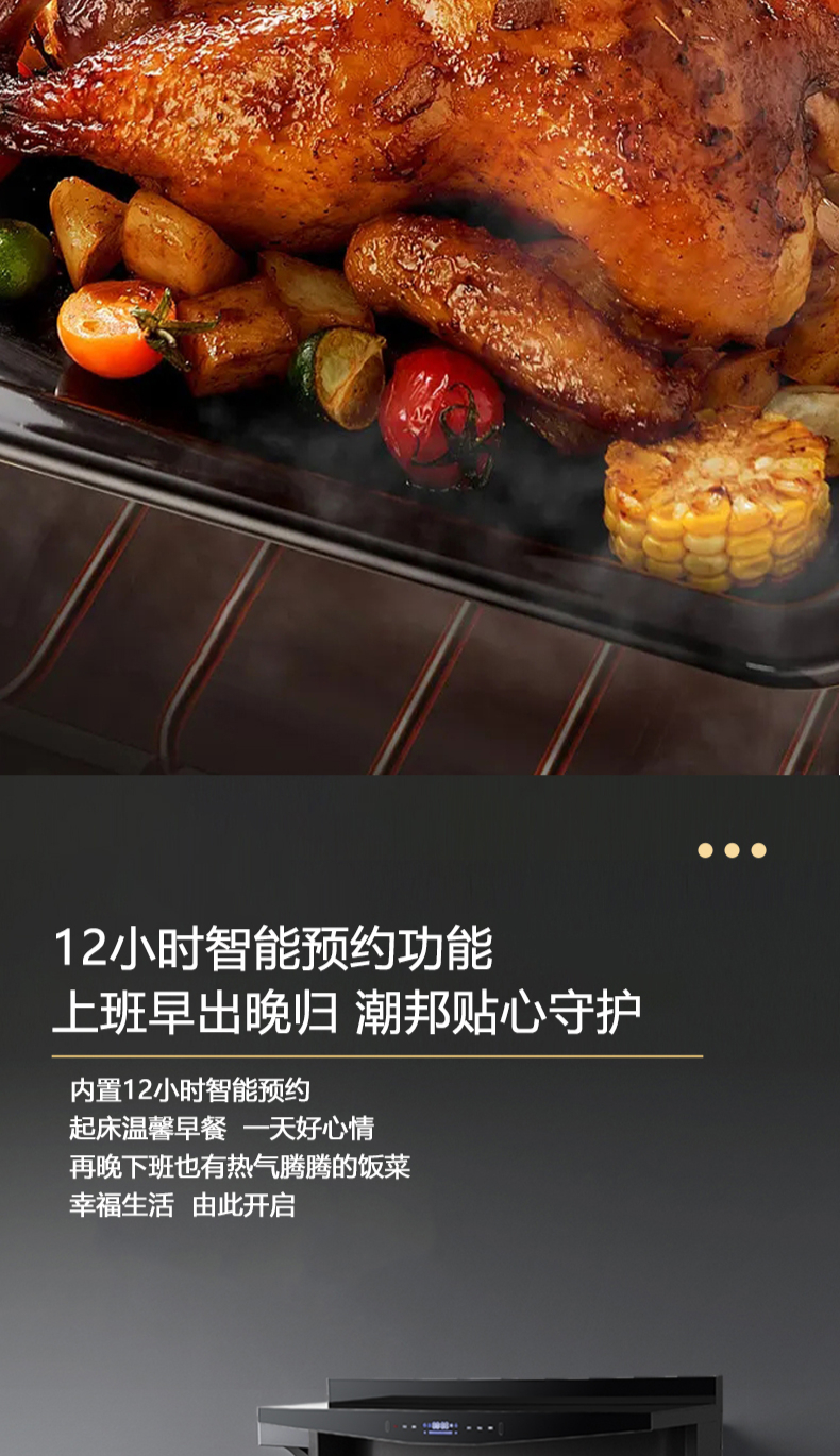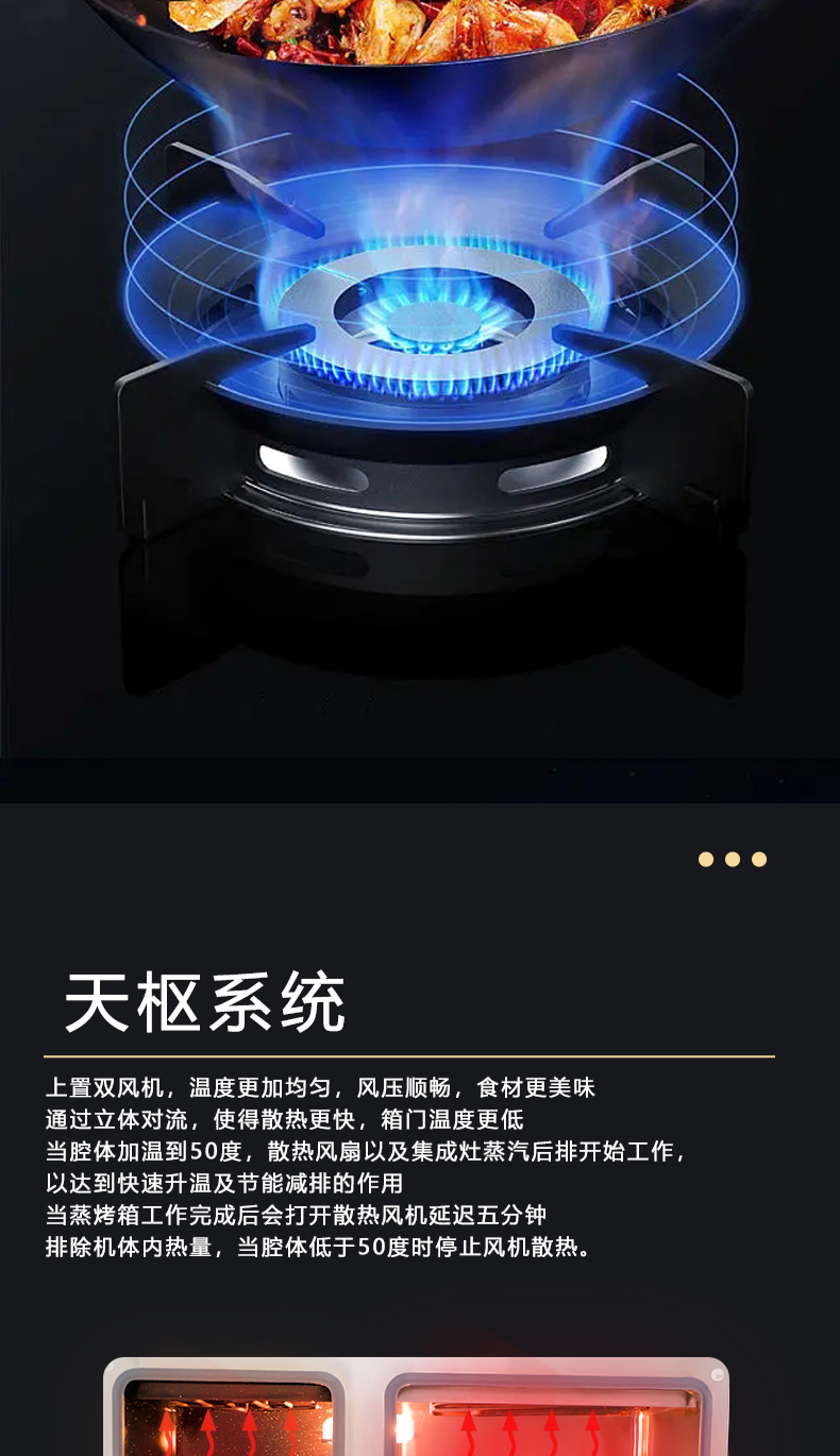 蒸烤同步|1050Pa風(fēng)壓|智能變頻電機(jī)|揮手智控|曲面滑體無縫風(fēng)道|無縫瓷膜內(nèi)膽|一鍵熱融清洗|5 0kW大火力| 27m3 min巡航風(fēng)量| 智能預(yù)約功能