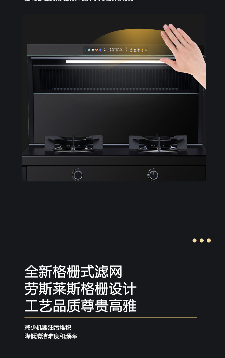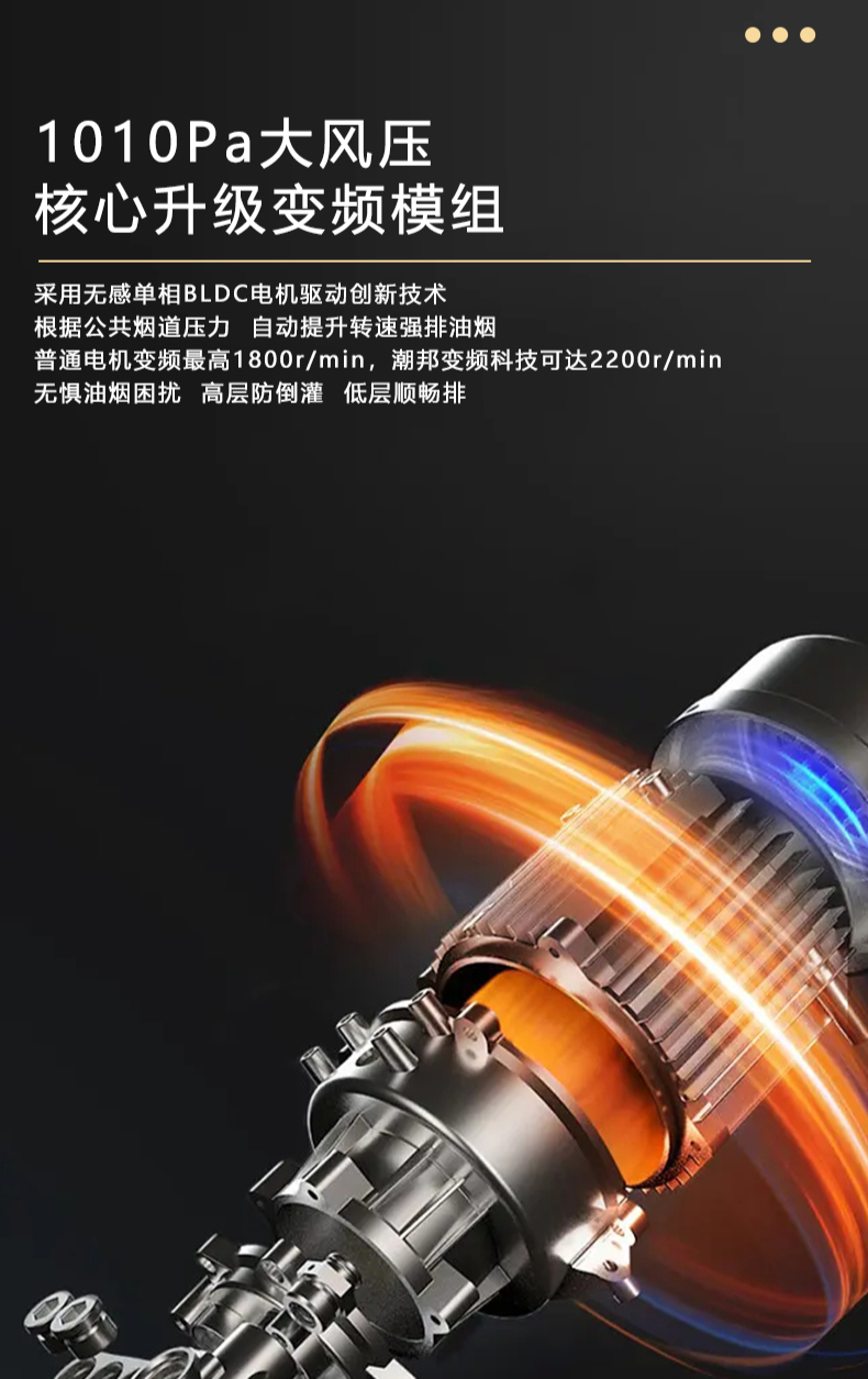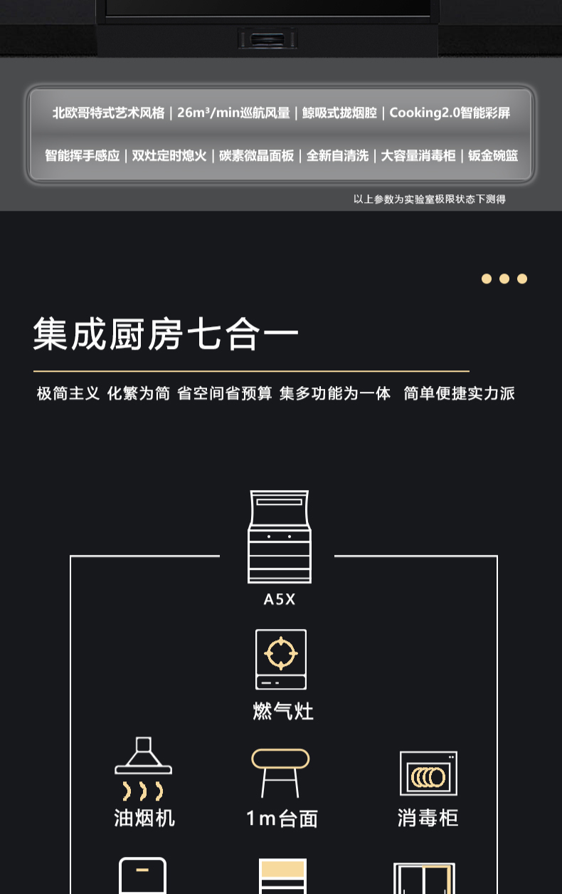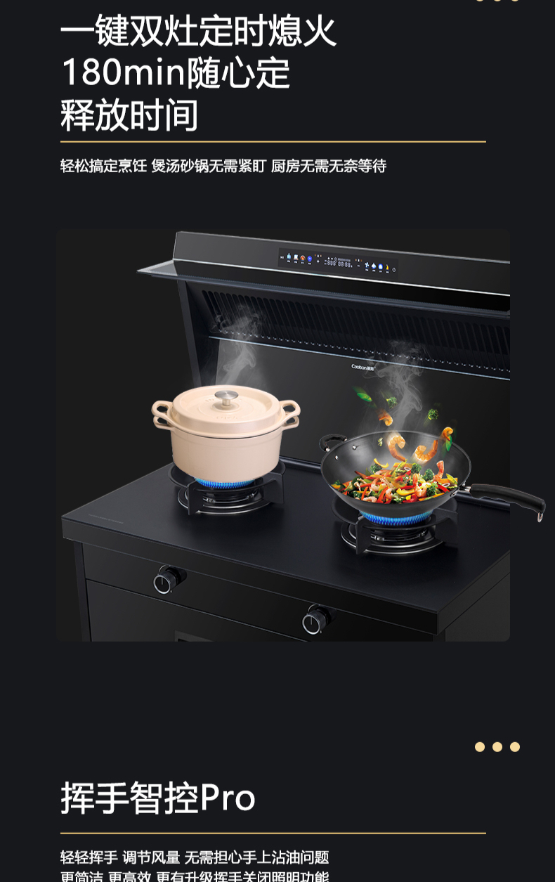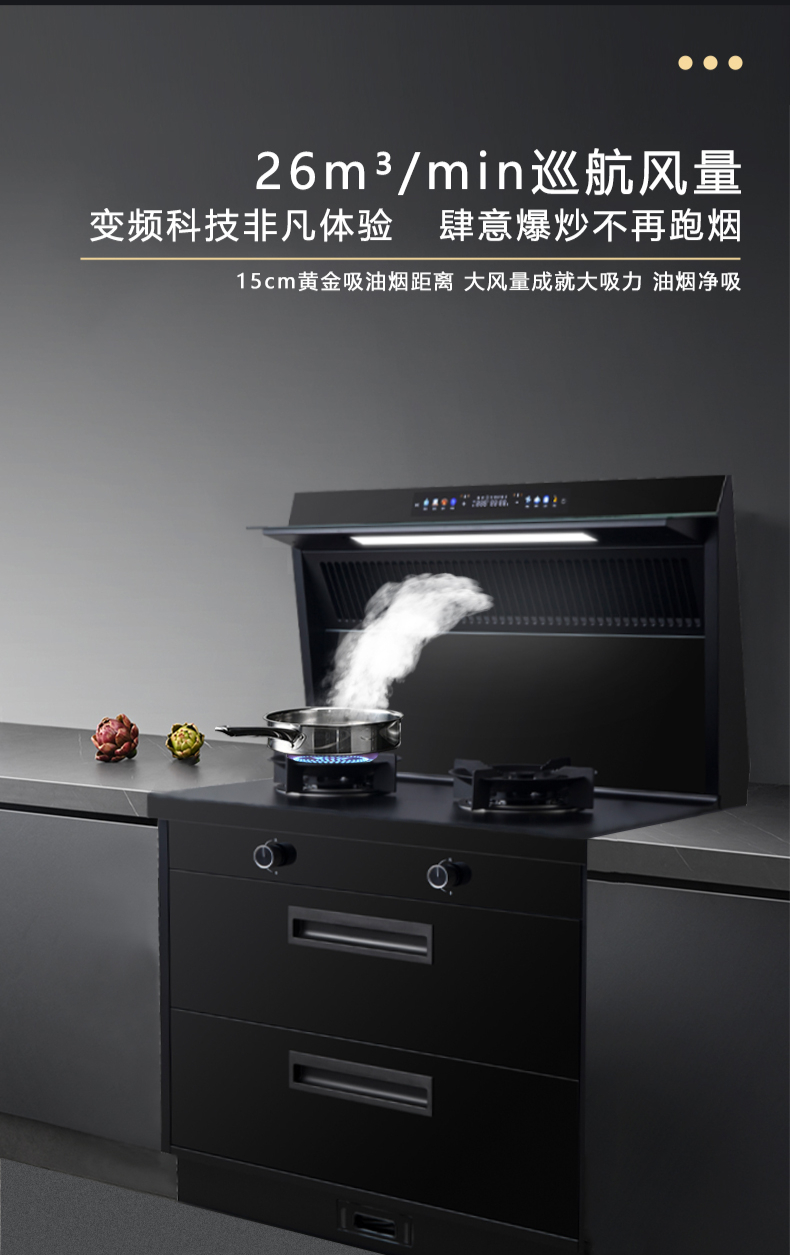 廚房七合一,26方超大巡航風量,雙核驅動變頻控制,5kW大火力,揮手智控,電熱自清潔
