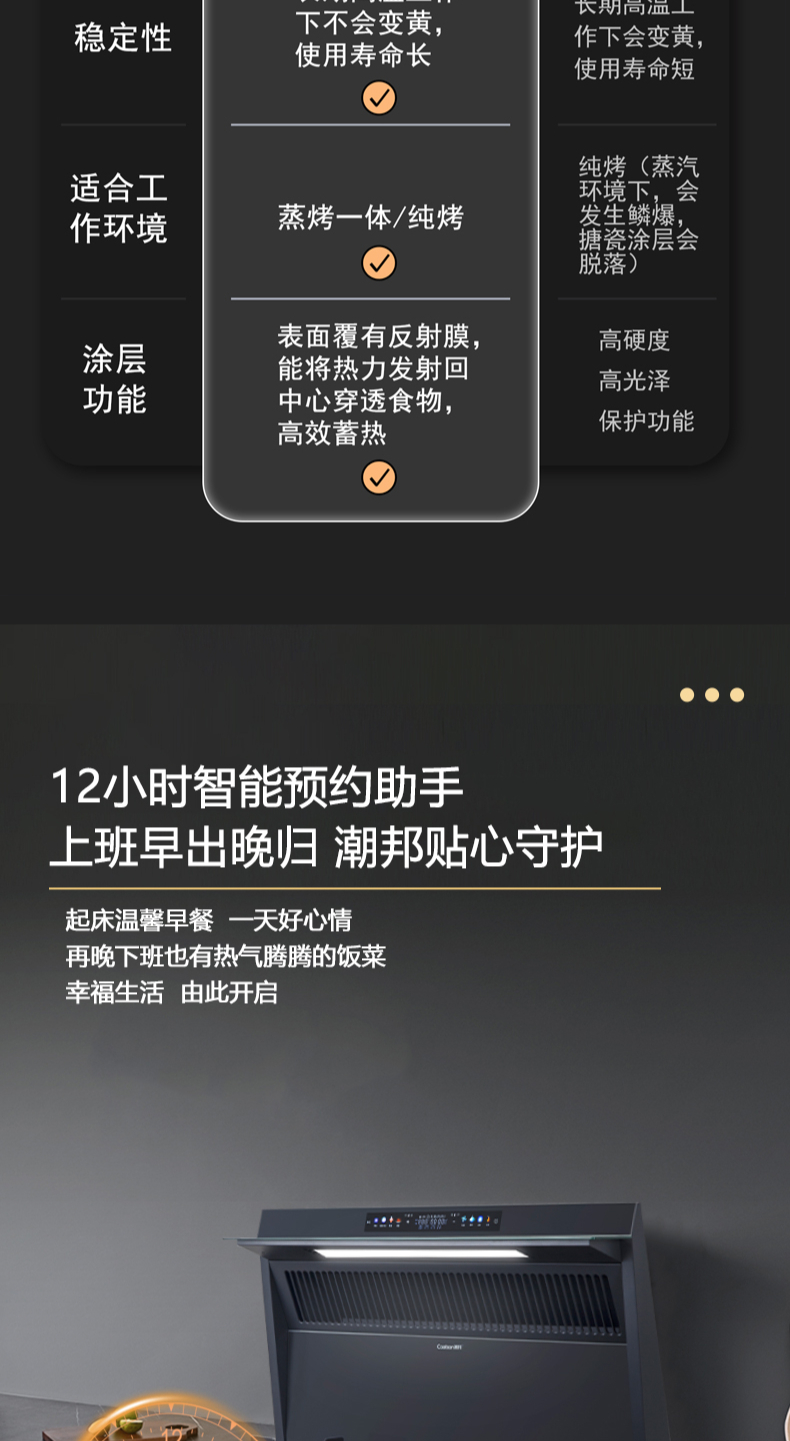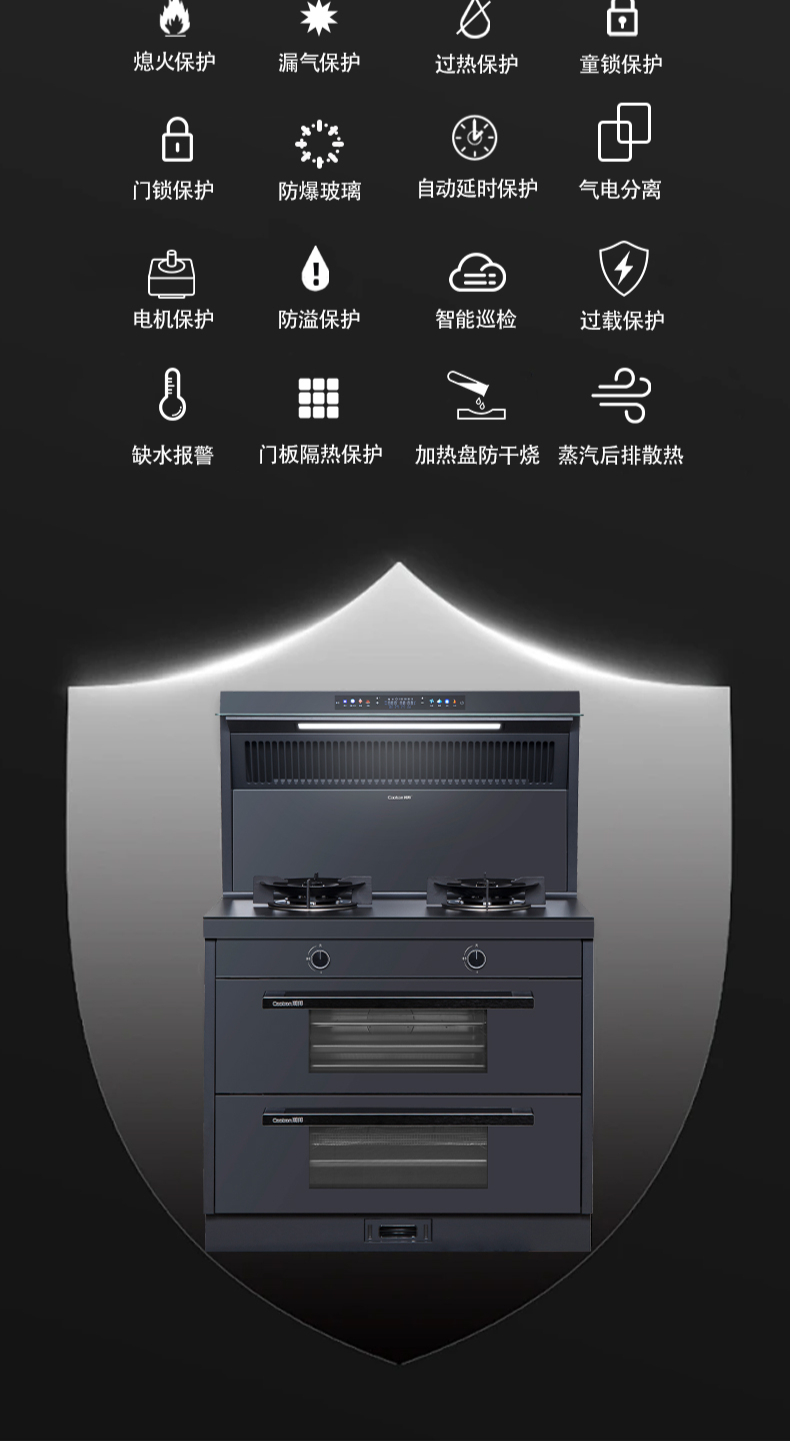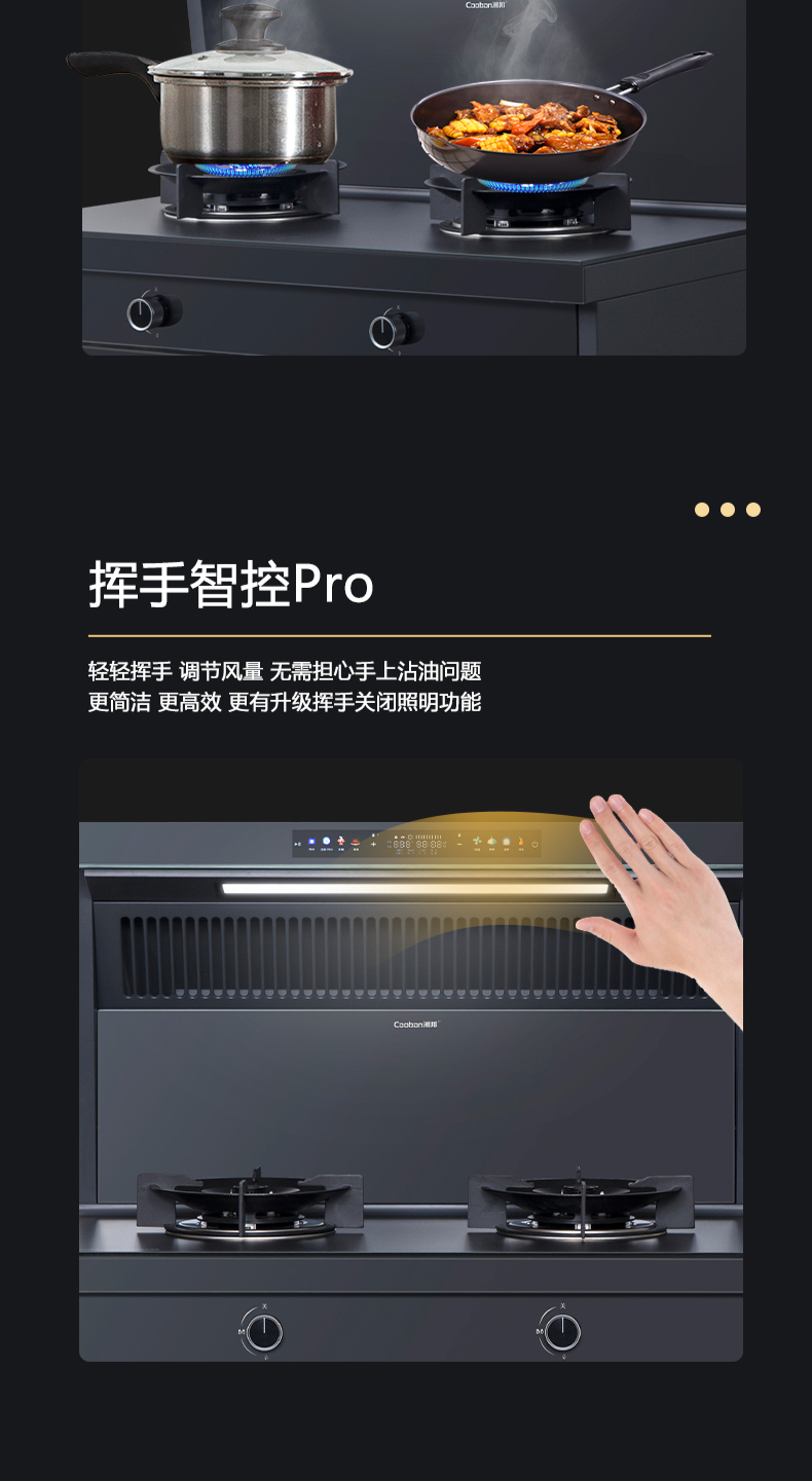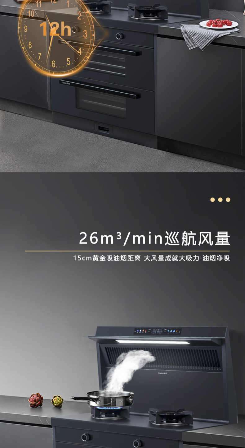 26方巡航風量,上蒸下烤新體驗,Cooking2 0智能彩屏,智能揮手感應(yīng)Pro,雙灶定時熄火,碳素微晶面板,全新自清洗,十六大安全保護