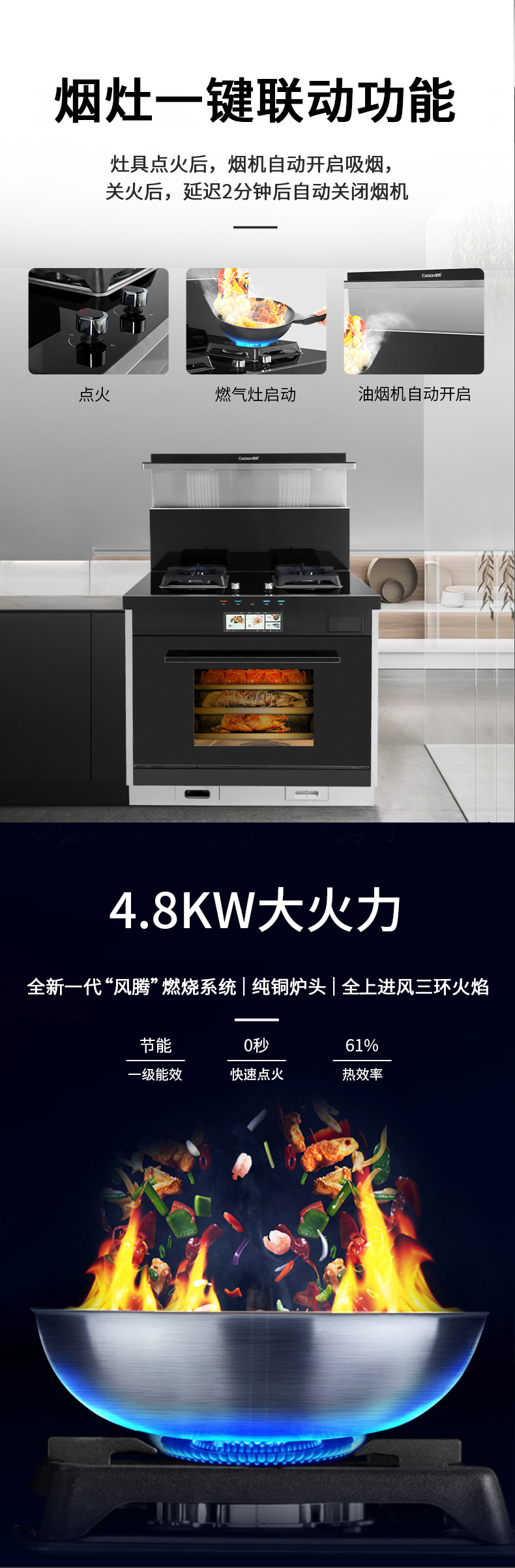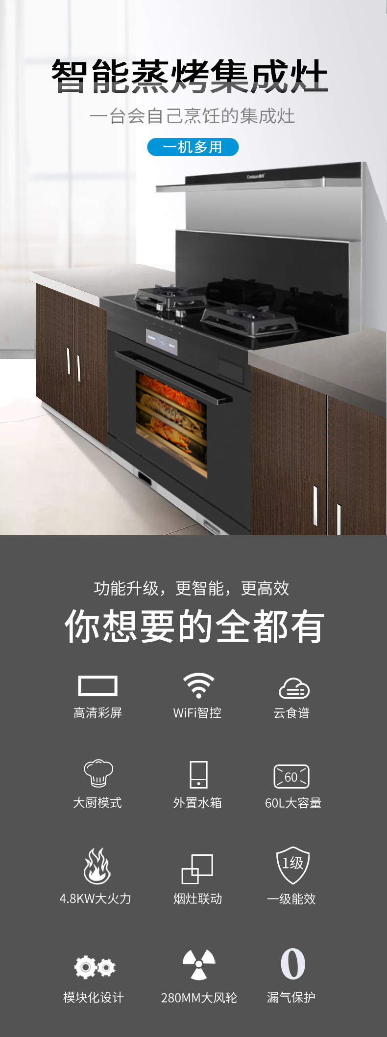 智能蒸烤消一體集成灶,一臺(tái)頂五臺(tái)。