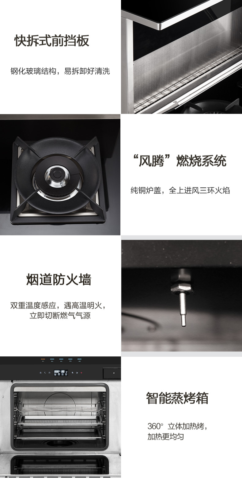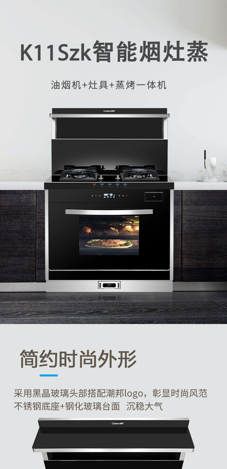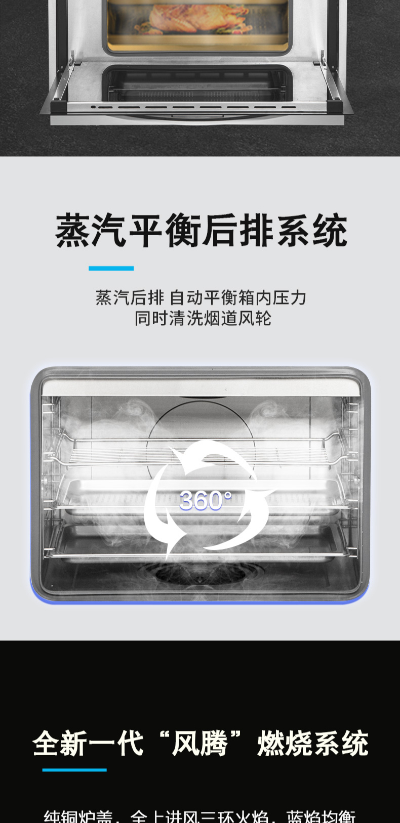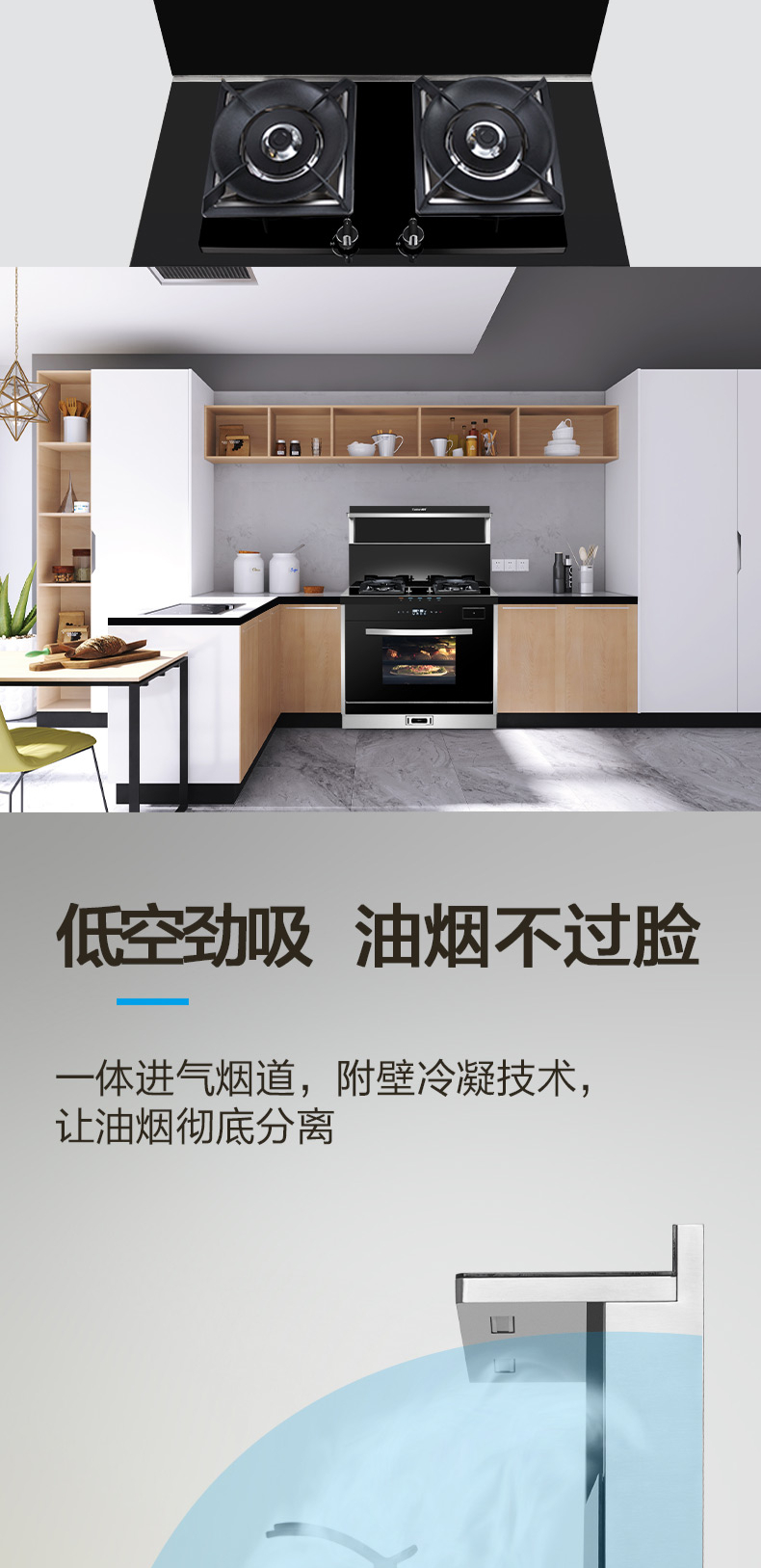 煙灶+蒸烤一體,60L大容量,蒸汽平衡后排。