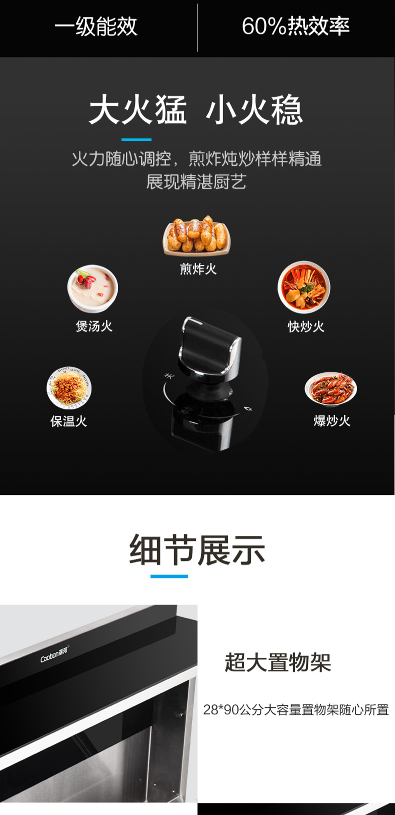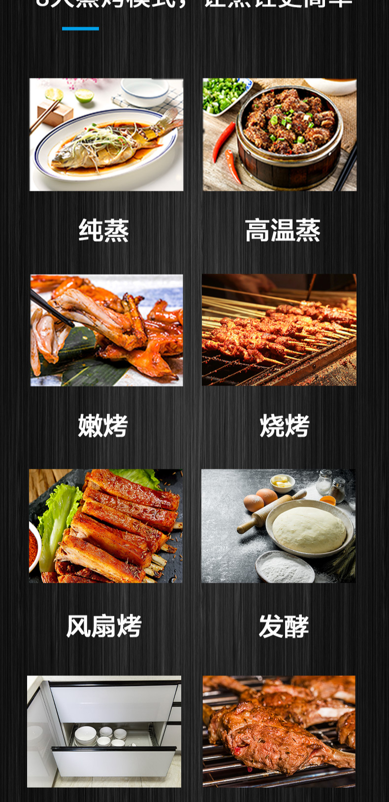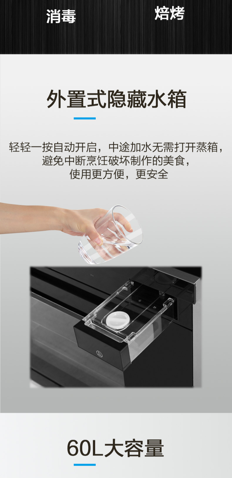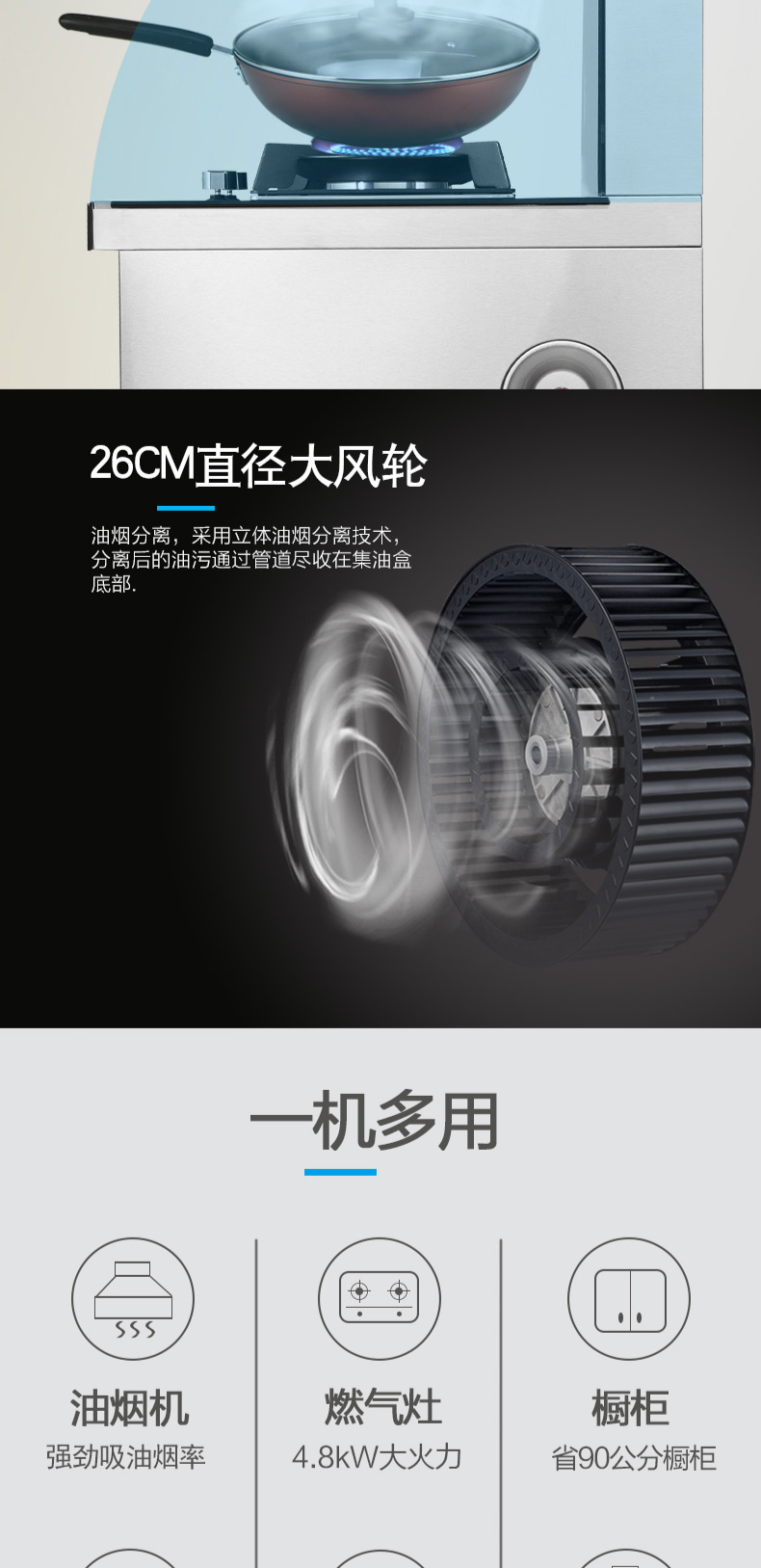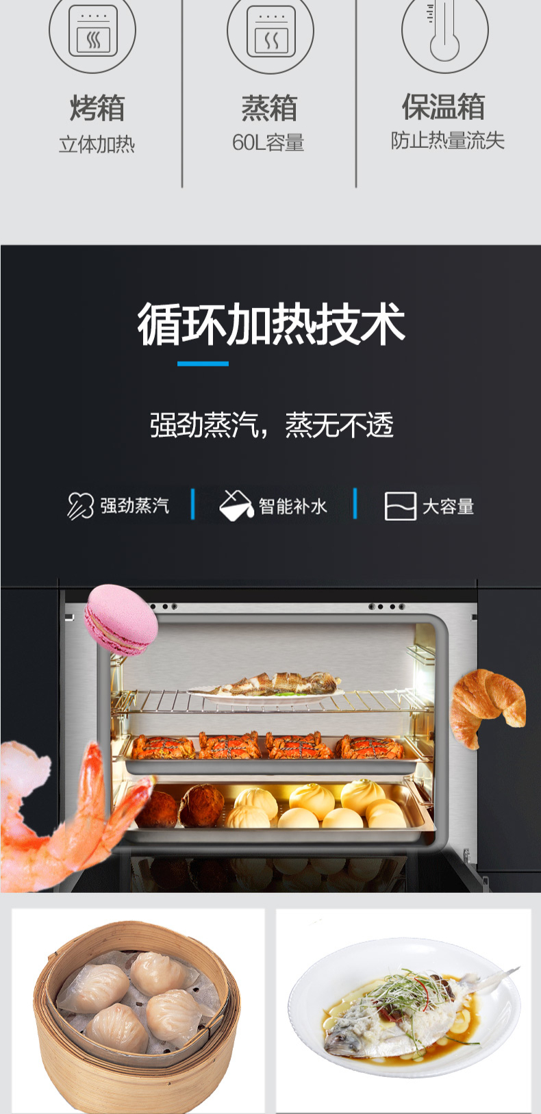 煙灶+蒸烤一體,60L大容量,蒸汽平衡后排。