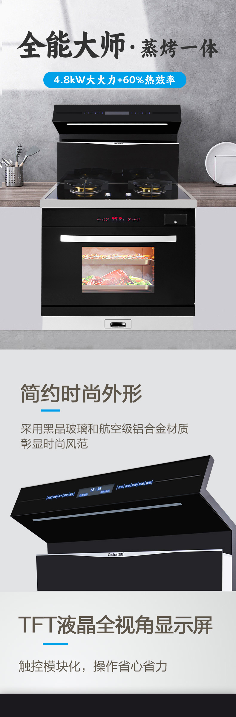 全能大師·蒸烤一體。4 8kW大火力,60%熱效率。