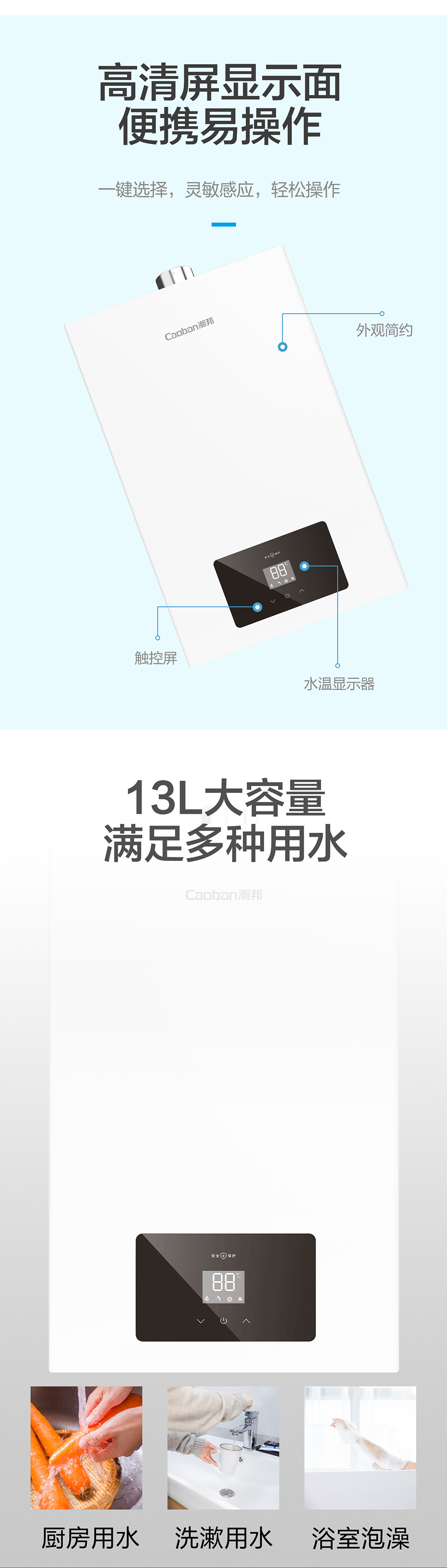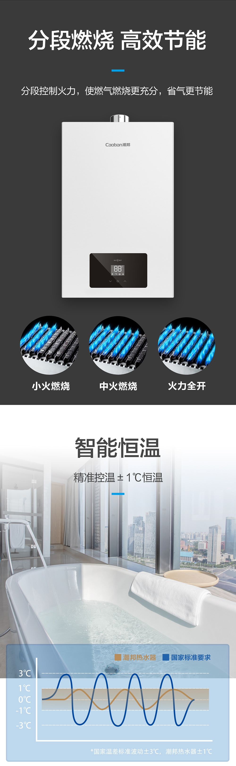 智能恒溫,低水壓啟動,多重安全。